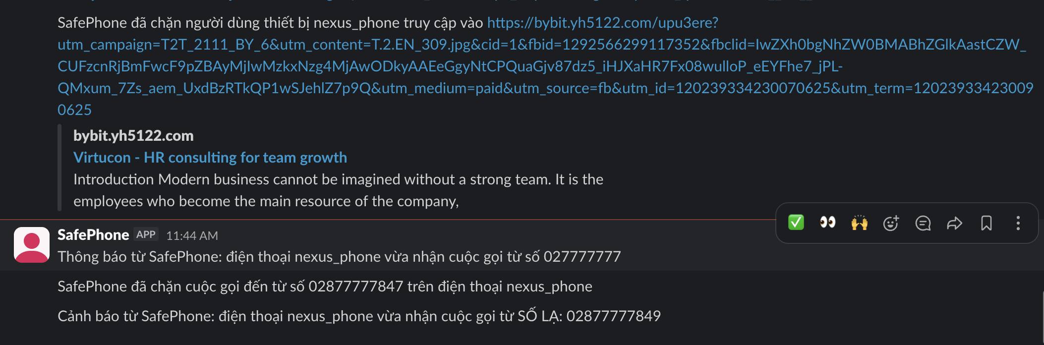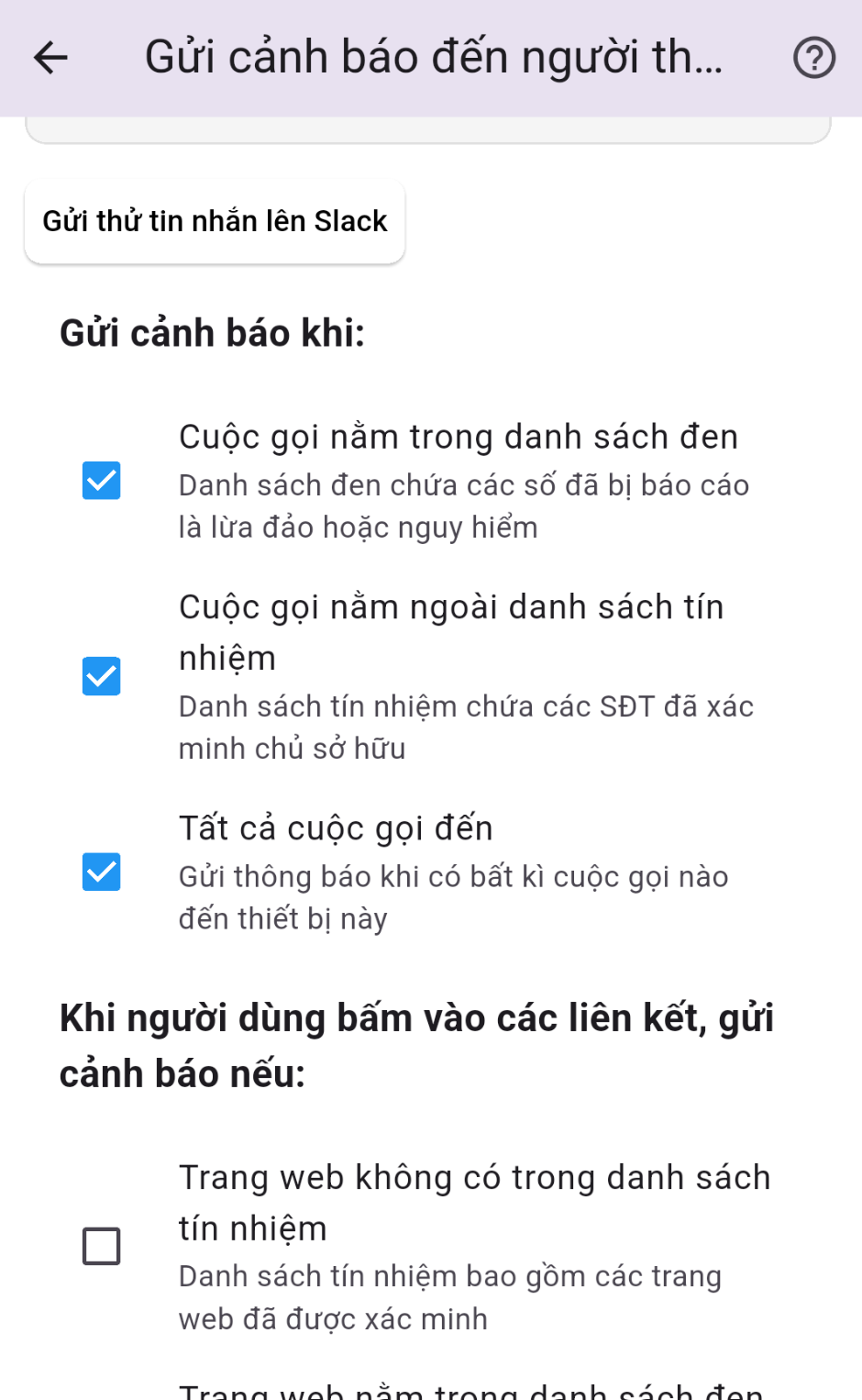 4. Gửi cảnh báo sớm khi có người thân gặp cuộc gọi lạ hoặc đường dẫn lạ