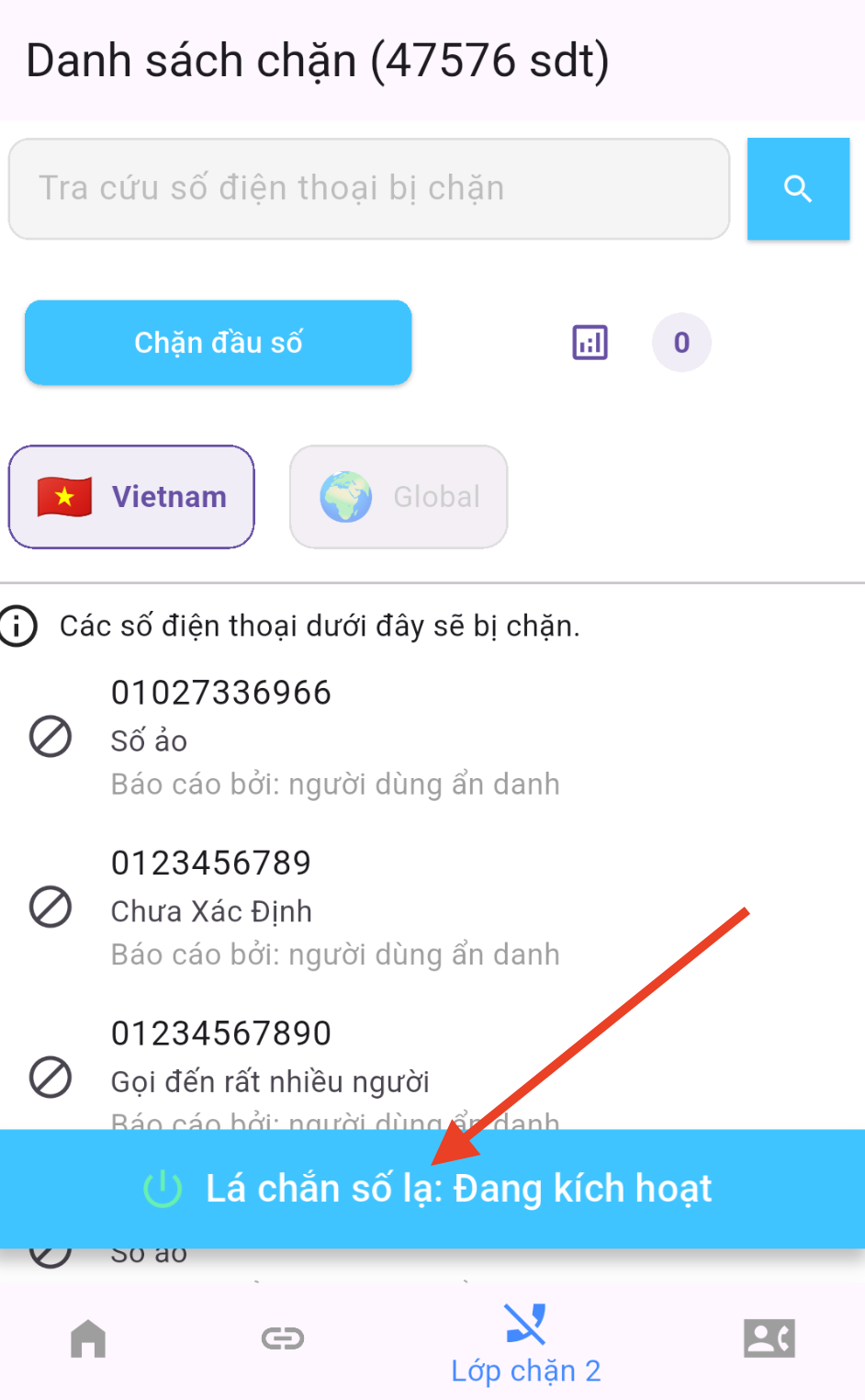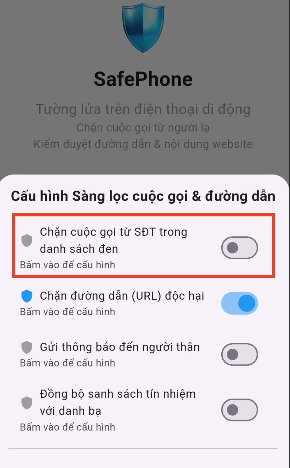 - Chặn cuộc gọi từ người lạ