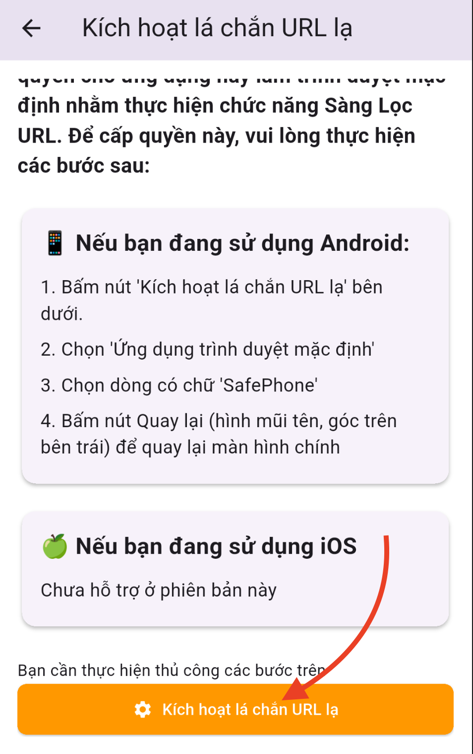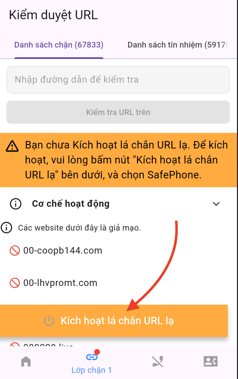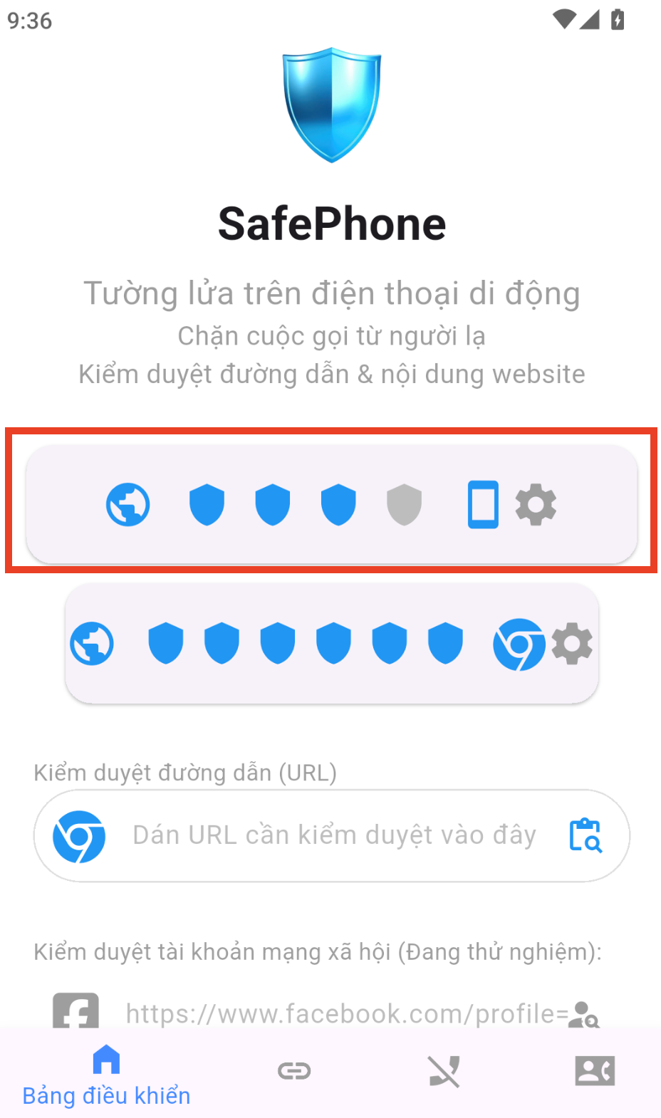 Sau khi hoàn tất, mọi liên kết được mở trên thiết bị sẽ đi qua SafePhone, và các website nằm trong blacklist sẽ bị chặn tự động.