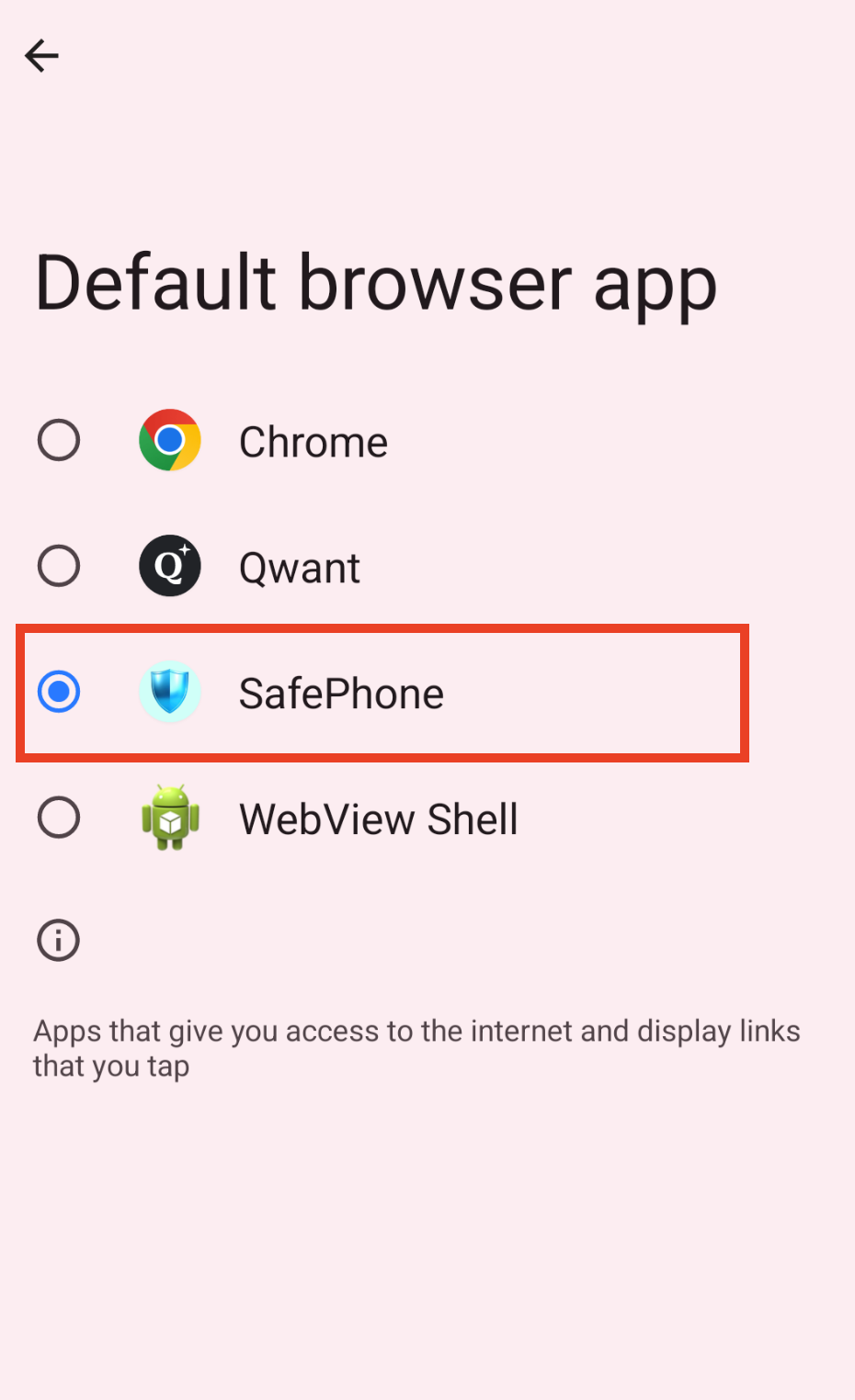 Thiết lập SafePhone làm trình duyệt mặc định để chặn website trong blacklist
